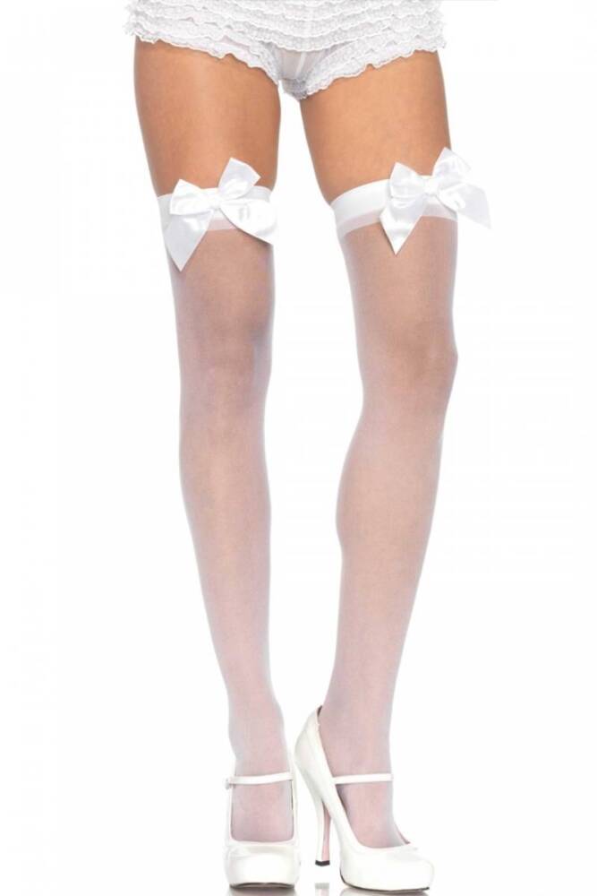 Beyaz Fiyonklu Beyaz Jartiyer Çorabı TM1212