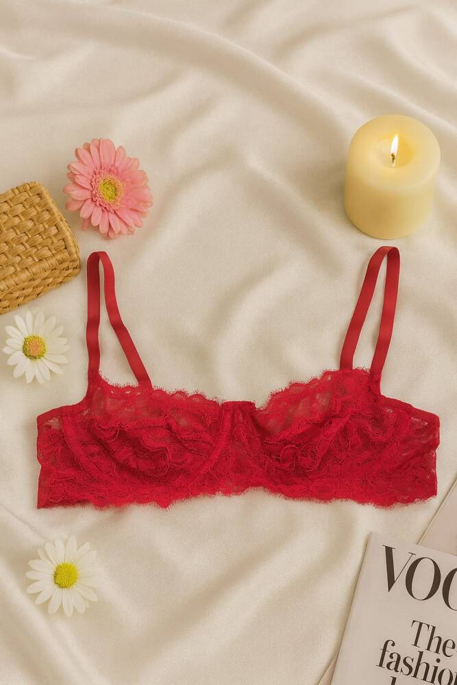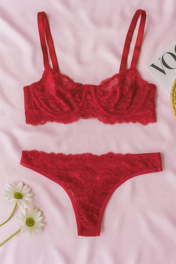 Tutkunun rengi kırmızı ile tasarlanan dantel bralet & tanga seti, hem şık hem de cesur görünmek isteyenler için mükemmel bir seçim. Yumuşak dokulu dantel kumaşı sayesinde cildinize nazikçe temas ederken, romantik ve iddialı havasıyla sizi özel hissettirir.