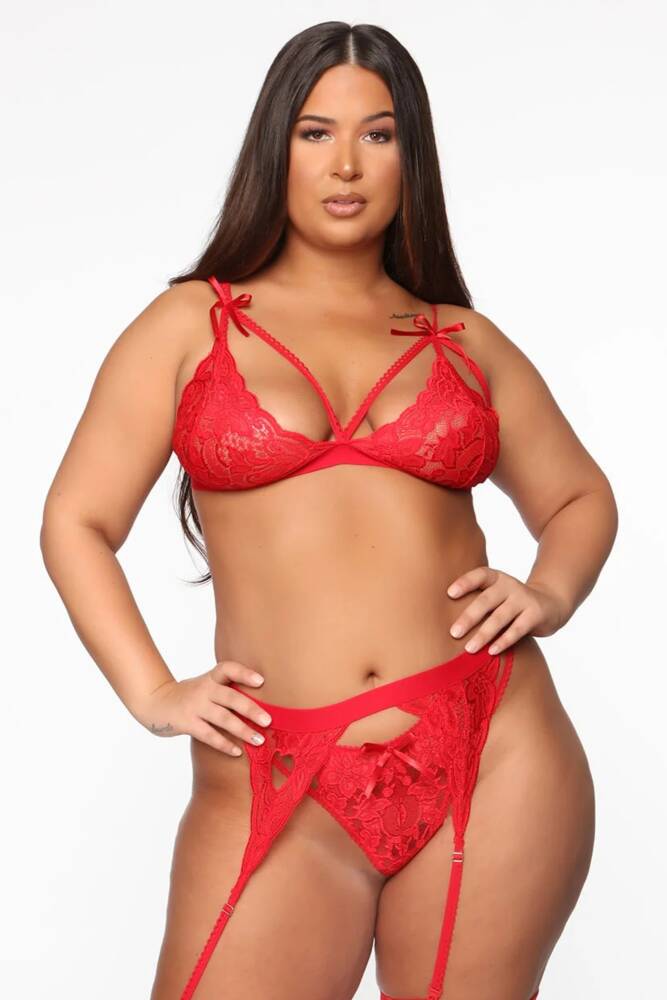 Kırmızı Dantelli Büyük Beden Jartiyer Takımı TM1300