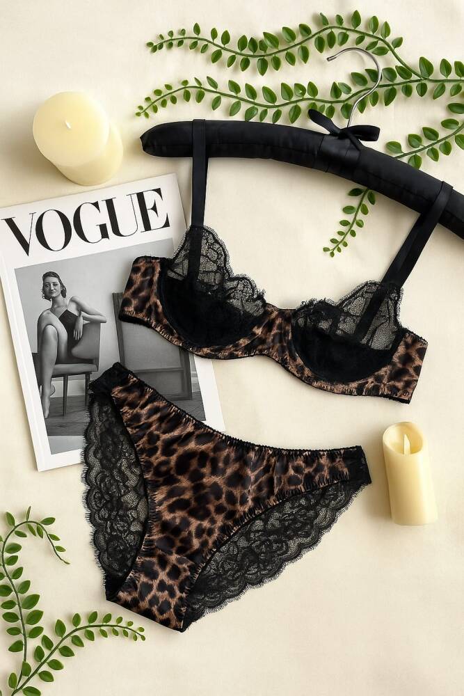 Leopar desenli dantel detaylı sütyen külot takımı, cesur ve feminen tarzı seven kadınlar için özel olarak tasarlandı. Parlak saten kumaşı ve zarif siyah dantelleriyle göz alıcı bir uyum sunar. Hafif destekli sütyeni göğüsleri nazikçe kavrayarak doğal bir form verirken, ayarlanabilir askılar kişisel konfor sağlar. Yanları dantelli yüksek bel külot ise hem şık hem de rahat bir kullanım vadeder. İç giyimde şıklığı, zarafeti ve rahatlığı bir arada sunan bu takım, günlük kullanımın yanı sıra özel anlarınızda da stilinizi öne çıkarır. Yumuşak dokusu sayesinde cilt dostudur ve uzun süreli kullanımda konfor sağlar. Kendinize ya da sevdiklerinize şık ve dikkat çekici bir hediye seçeneği olabilir.